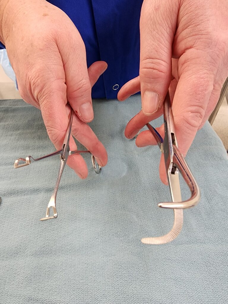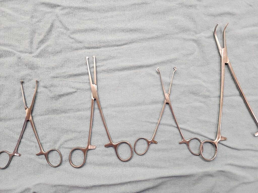 Let’s look at clamping instrument examples. Compare clamps used in an abdominal laparotomy set versus clamps used in orthopedics.
