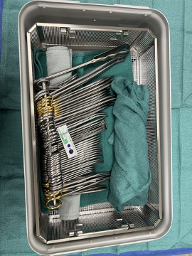 - minimize damage to delicate instruments by placing all heavy items such as retractors on the bottom of the tray with delicate instruments on top, and using tip protectors on sharp tips