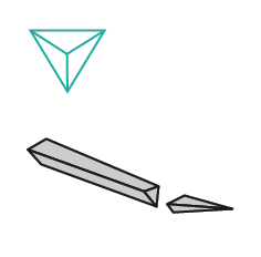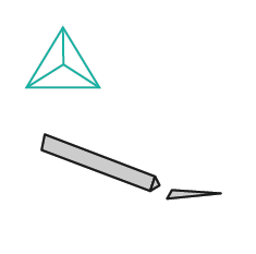 Two opposing cutting edges, with a third on the inside curve. Change in cross section from a triangle cutting tip to a flattened body.