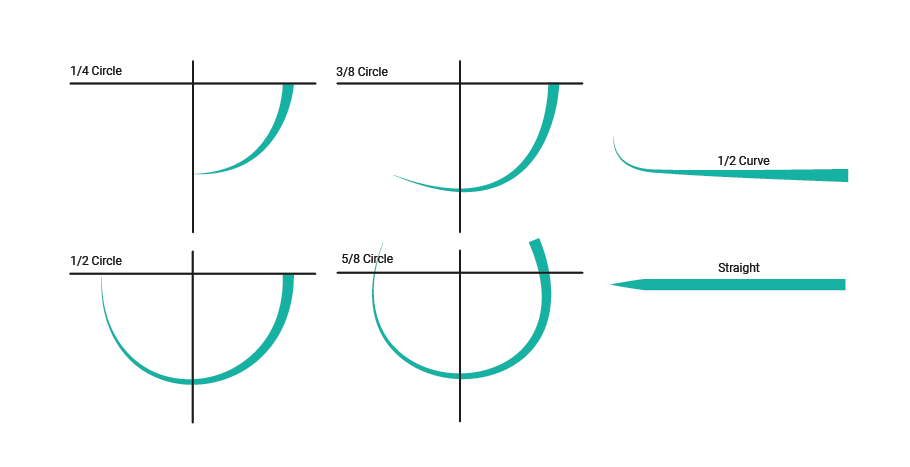 Surgical needles come in many different shapes and sizes. Have a look at the Ethicon product manual to see many examples of suture needles: