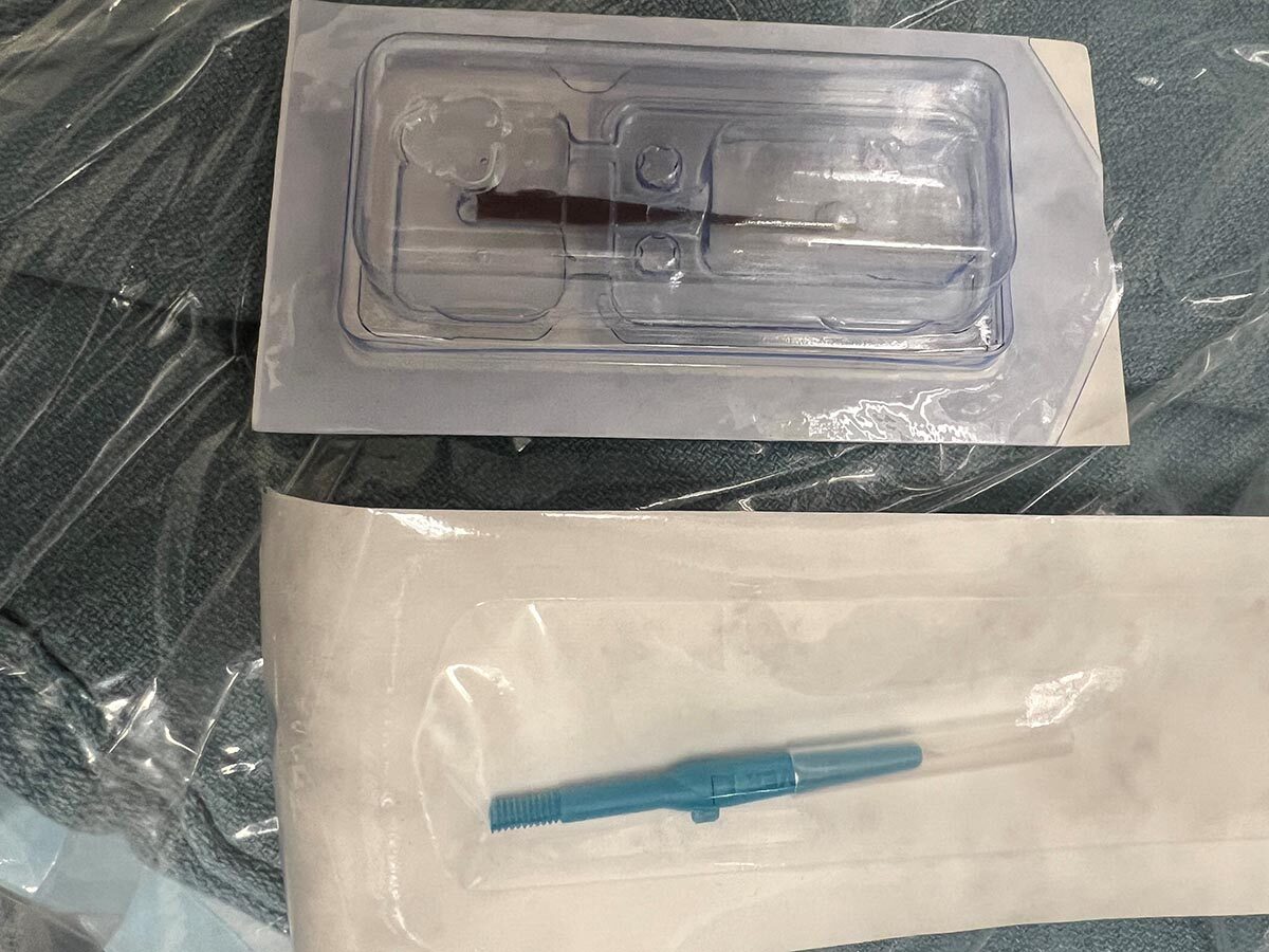 Hypodermic needles are other sharps that can be found on the sterile field. These needles are used to administer medication. Hypodermic needles come with a plastic cap that should remain on the needle until it is required. These needles come in different gauges and lengths depending on the location of the type of medication being used.